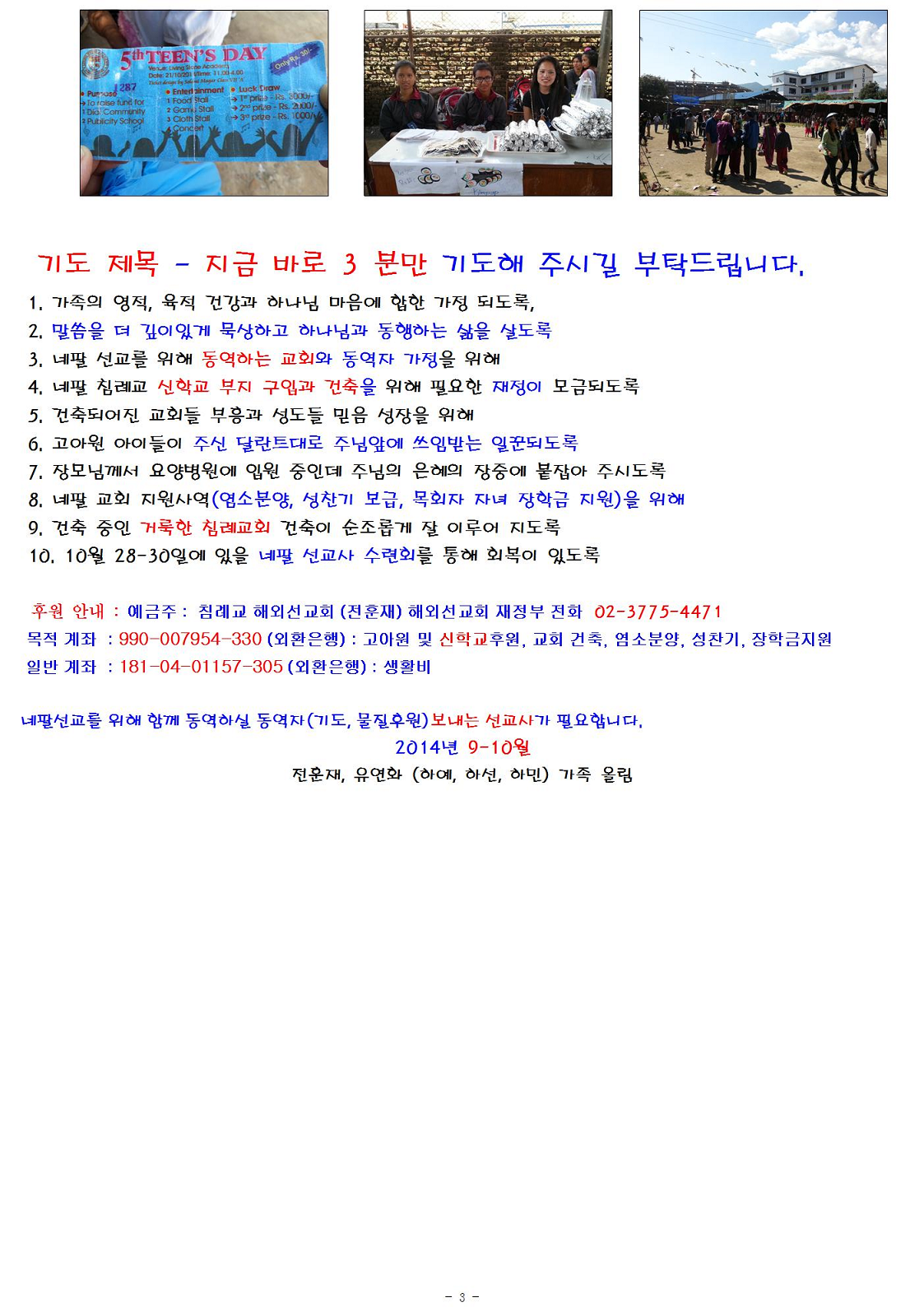여러분의 관심과 기도가 필요합니다.