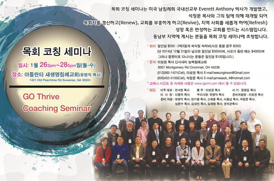 목회 코칭 세미나 (2015.1-26~28 / 아틀란타 새생명침례교회)